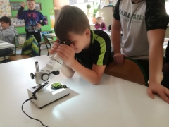 Obserwacje mszaków i paprotników, rośliny iglaste, epiderma roślin, przystosowania do życia na lądzie, obserwacje piór papugi, jaja kurzego i kwiatów roślin okrytonasiennych to tylko niektóre tematy zajęć z przyrody oraz biologii, podczas których korzystaliśmy z mikroskopów stereoskopowych i świetlnych zakupionych w ramach programu Laboratoria Przyszłości. Nasze obserwacje miały ściśle określony cel, były dobrze zaplanowane i rzetelnie przeprowadzone. Pamiętamy bowiem, że obserwacja jest jedną z głównych metod badawczych stosowanych w nauce!