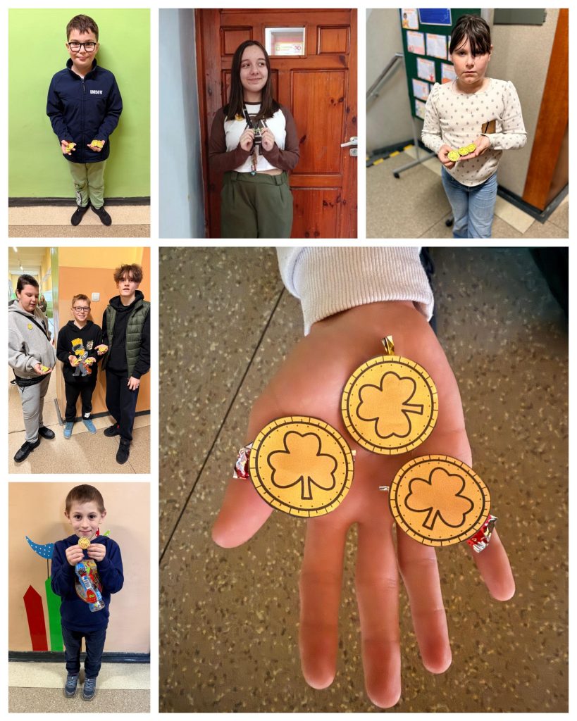Dużą popularnością cieszyła się również gra „Poszukiwanie skarbu Leprechauna”. Na terenie szkoły ukryte zostały „złote” monety z niespodzianką, a uczniowie z zaangażowaniem podejmowali wyzwanie ich odnalezienia.