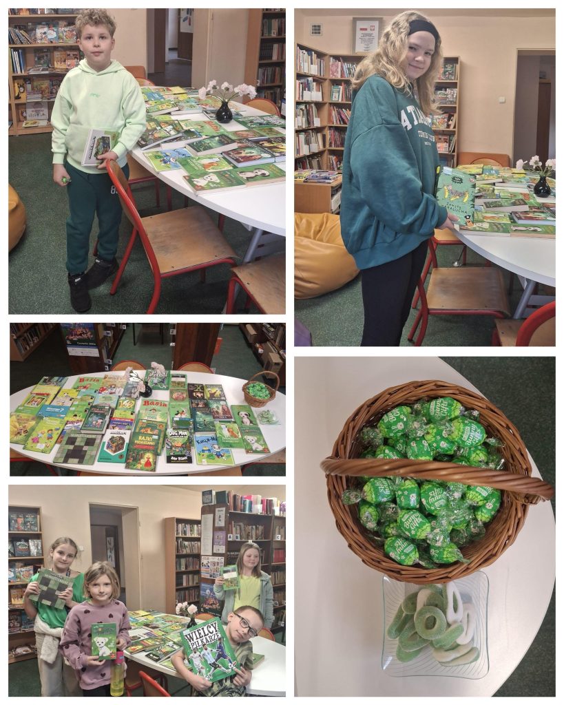 Do świętowania włączyła się także biblioteka szkolna, promując czytelnictwo w kreatywny sposób. Uczniowie wypożyczali książki w zielonych okładkach, odkrywając, że czytanie może być nie tylko wartościowe, ale i inspirujące oraz pełne niespodzianek. Na odwiedzających czekał również słodki, „zielony” poczęstunek.