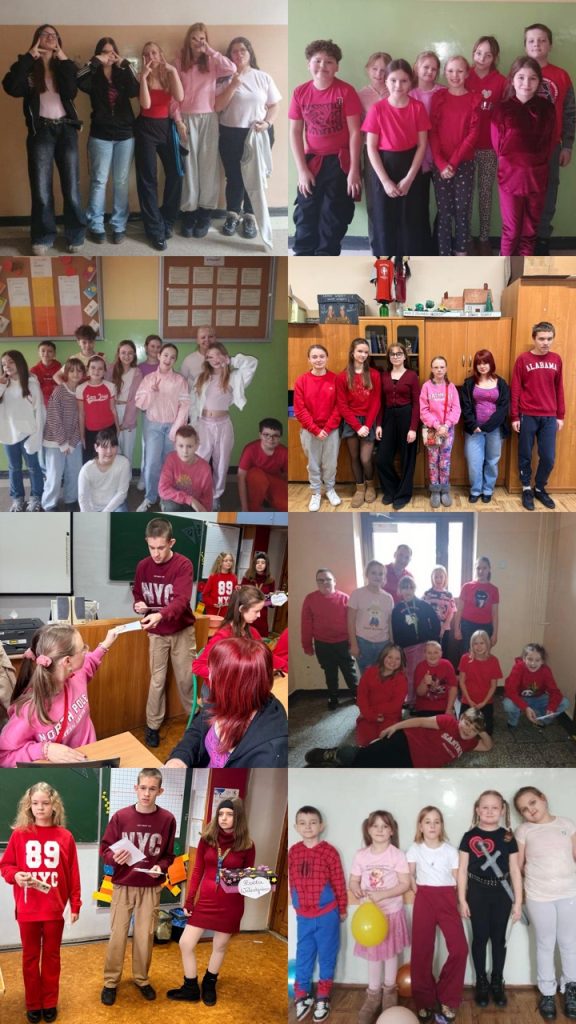 W piątek świętowaliśmy Dzień Walentynek, który upłynął w miłej i serdecznej atmosferze. Uczniowie chętnie włączyli się w akcję, zakładając elementy garderoby w czerwonym i różowym kolorze, podkreślając wyjątkowy charakter tego dnia.