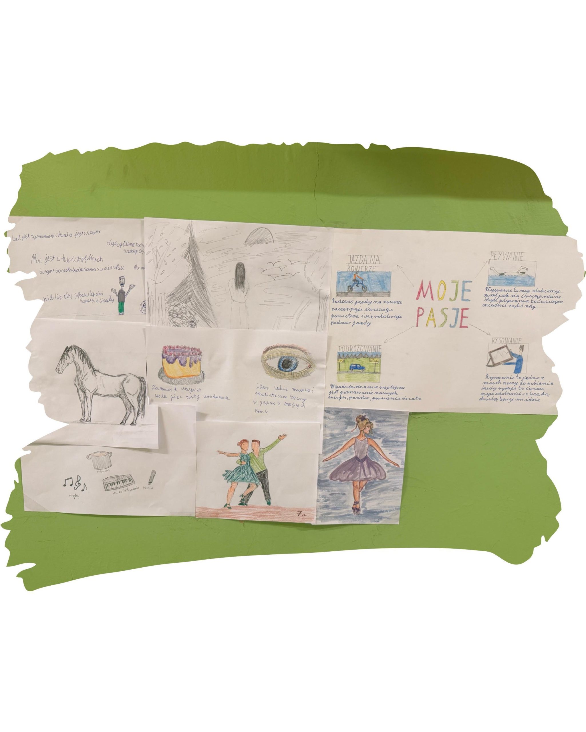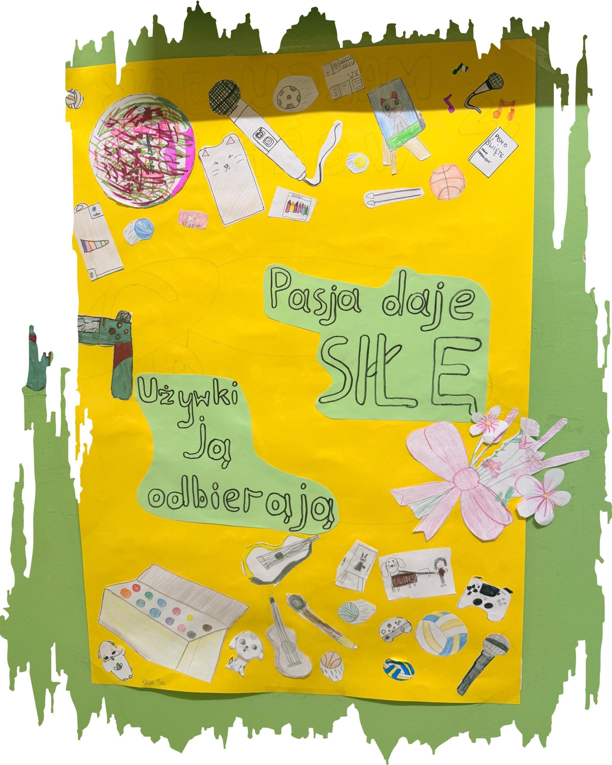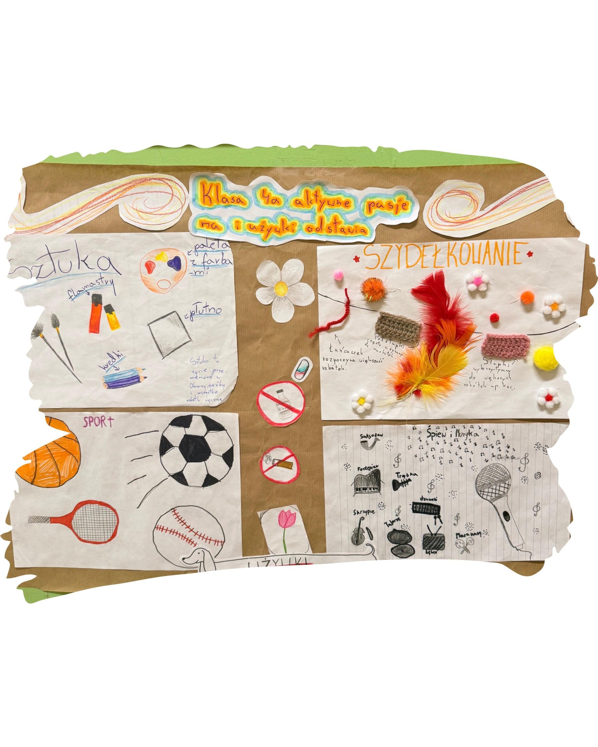 Każda klasa przygotowała plakat prezentujący zainteresowania uczniów – od sportu, muzyki i tańca, po sztukę, gry czy podróże. Prace wyróżniały się ogromną kreatywnością – pojawiły się kolorowe kolaże, inspirujące hasła, ciekawe opisy i symbole pokazujące, jak wiele pozytywnych aktywności może wypełniać wolny czas młodych ludzi.