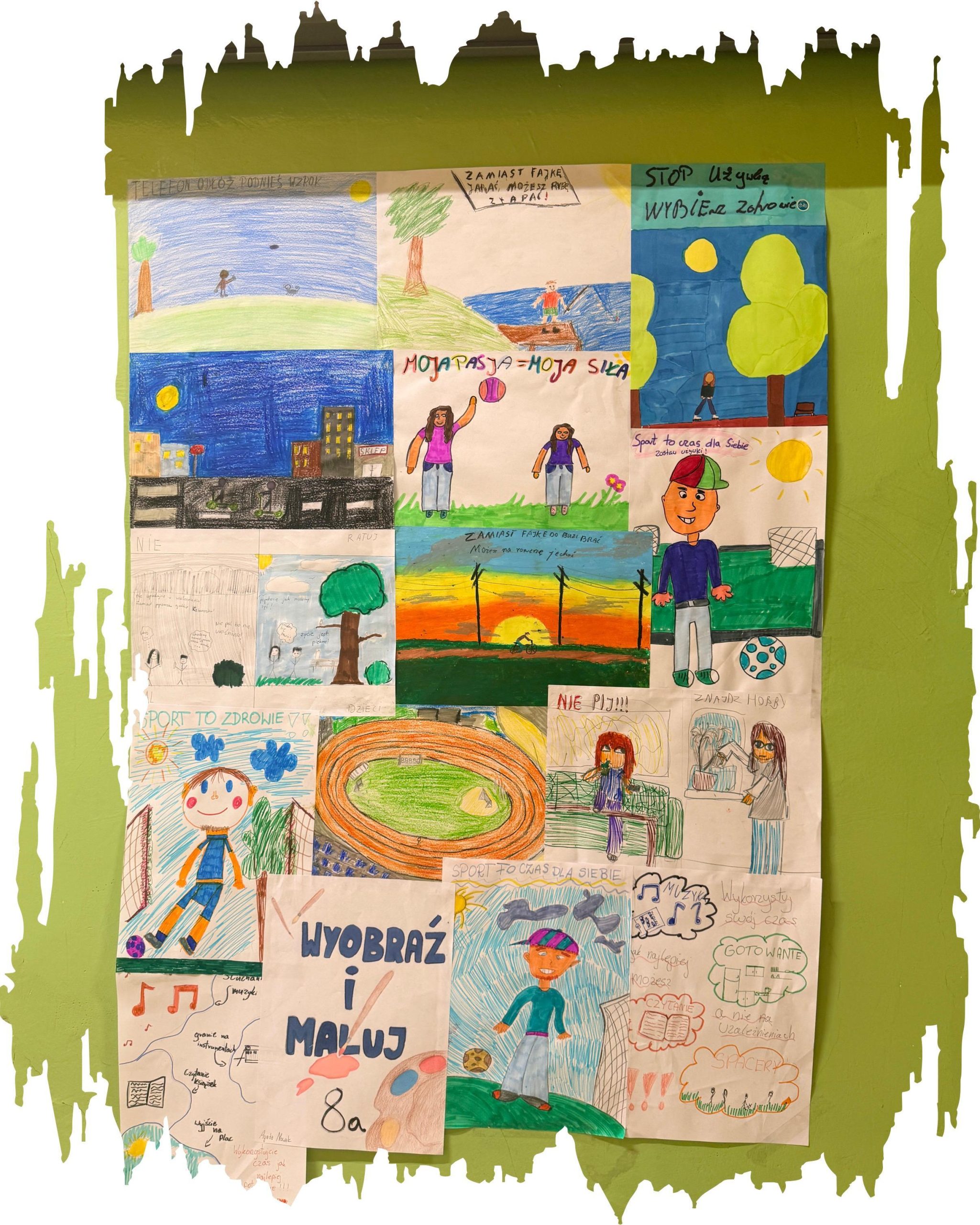 Wszystkie plakaty zostały zaprezentowane na szkolnym korytarzu, tworząc inspirującą wystawę pełną pasji i zaangażowania. Uczniowie udowodnili, że każdy może znaleźć coś, co daje satysfakcję i stanowi wartościową alternatywę dla sięgania po używki.