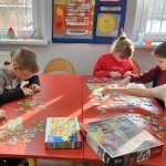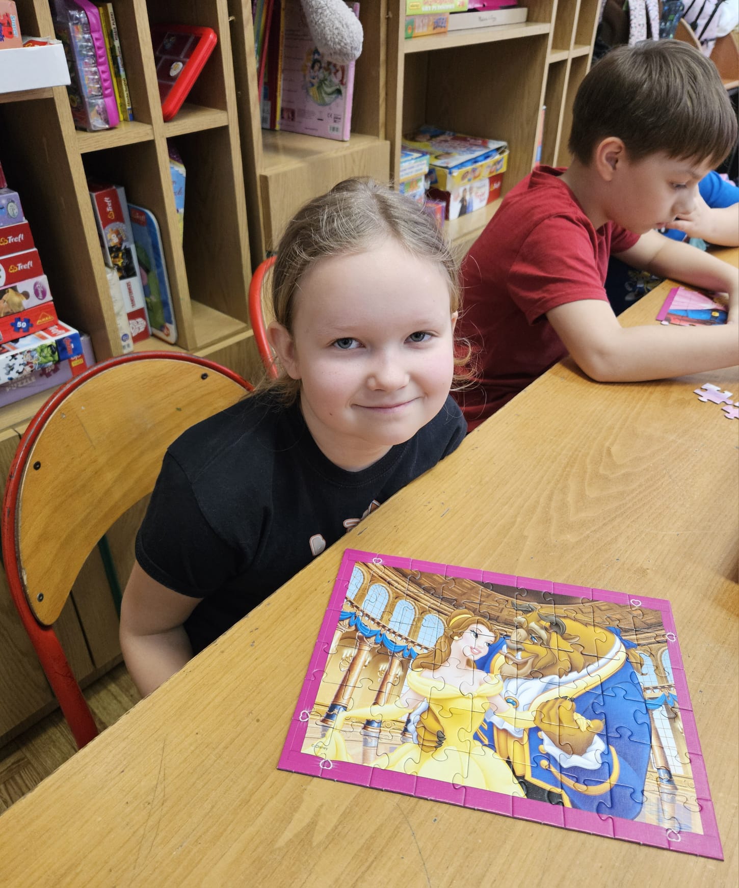 Zajęcia z wykorzystaniem tangramów, układanek tetris i mozaiek geometrycznych powodują, iż nasi uczniowie ćwiczą sprawność manualną, logiczne myślenie, spostrzegawczość i wyobraźnie poprzez zabawę i nigdy się nie nudzą 🙂