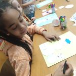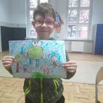 Na zajęciach świetlicowych pt. „Spotkanie z naszym przyjacielem Marsjaninem” dzieci z klasy 1a namalowały planety, na których chciałyby zamieszkać.