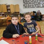 Zajęcia manualne to jedna z form wszechstronnego rozwoju dziecka. Poprzez wykorzystanie różnorodnych technik prac plastyczno- technicznych pomaga dzieciom tworzyć. Dzieci poprzez wykonywanie różnych czynności doskonalą swoje umiejętności manualne oraz ruchowe. Na zajęciach świetlicowych nasi uczniowie prócz standardowych materiałów plastycznych (farb, plasteliny, kredek, bibuły, itd.) mają do dyspozycji również niekonwencjonalne materiały takie jak np. koraliki pyssla lub piasek kinetyczny.