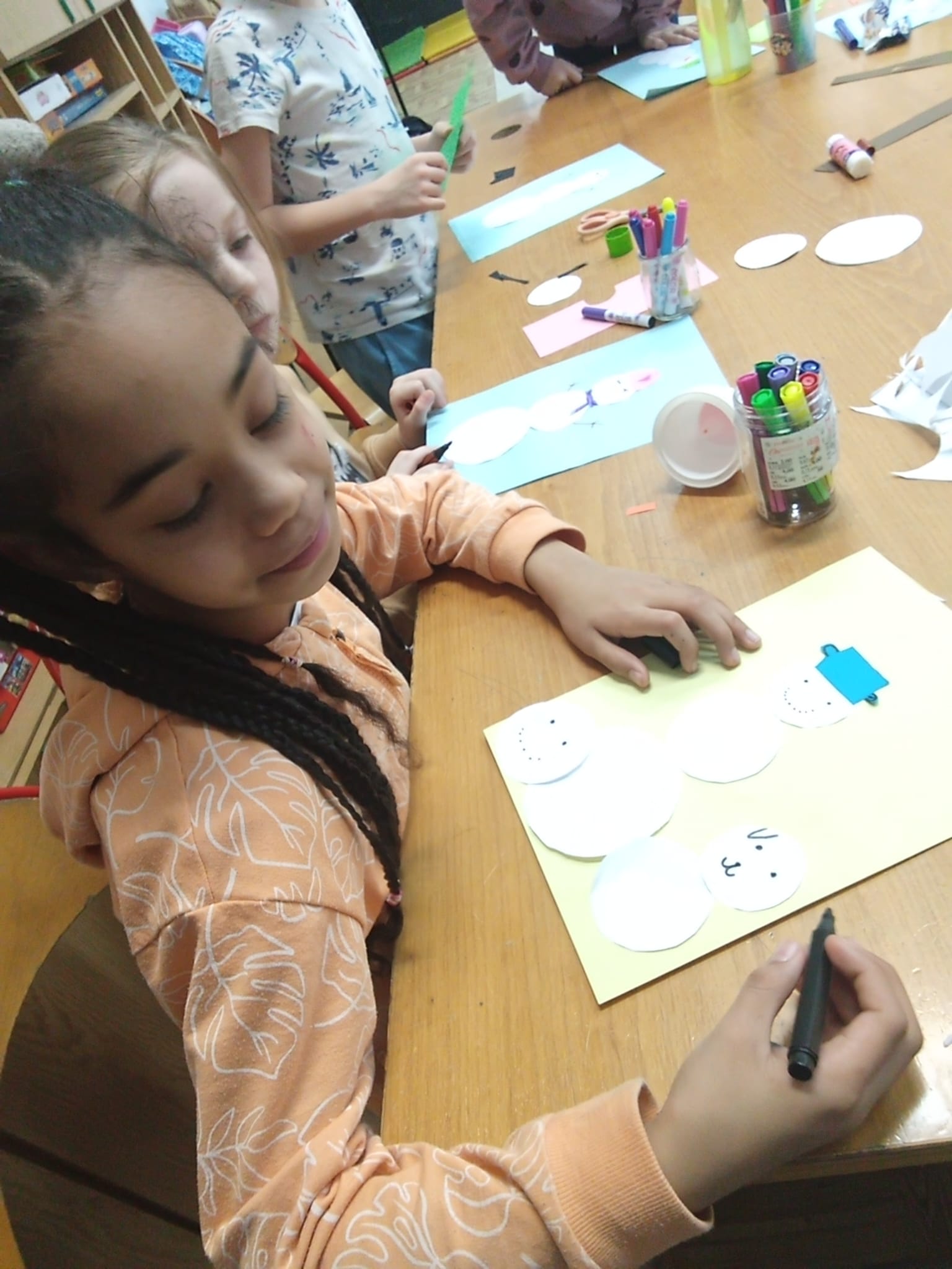 W ramach zajęć obejrzeliśmy film Grufołak, rozmawialiśmy o empatii, naszych uczuciach i emocjach, które potem wyrażaliśmy w formie pracy plastycznej.